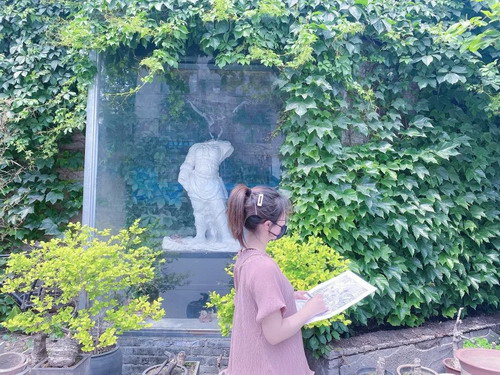 “王羲之故居,算是闹中取静的城市花园,迈入门槛的那一刻便远离了城市喧嚣。看着碑文,我的思绪回到了那个遥远的时代……妇孺皆知的一代大师王羲之,他坚韧不拔不断突破自己,十年磨一剑,最终登上巅峰。他的事迹激励着一代又一代青年奋发向上。学习如逆水行舟,不进则退,作为美术生,画画亦是如此。虽然疫情原因,无法出远门,可是美就在身边,抓住美的的“尾巴”,用手中的笔记录美好瞬间。”