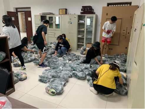 党员服务队归整新生军训服装