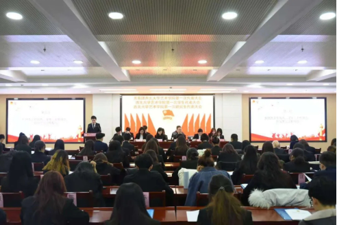 校团委书记寇嘉代表校团委向大会的召开表示热烈祝贺,向全院团员青年致以亲切的问候。她指出,长期以来,yl7703永利集团团委在学院党委和校团委的领导下,紧密围绕学院人才培养中心工作,针对美术类青年学生特点,创造性地开展各项工作,在思想政治引领、校园文化活动、社会实践、志愿服务、团学组织建设等方面成效显著,形成了具有艺术特色的共青团工作新局面。寇嘉书记代表校团委对我院团学工作提出三点希望:一是不忘初心,坚持问题导向,持续推进学院共青团改革;二是立足实际,聚焦主责主业,把握“围绕中心,服务大局”工作主线;三是狠抓基层,激发内部活力,扎实推进从严治团延伸“神经末梢”。她强调,学院团委应当勇于担当,开拓创新,团结和带领全院团员青年,为学院培养“基础理论扎实、基本技能过关、适应区域建设特点的复合型创新艺术人才”的社会主义合格建设者和可靠接班人贡献源源不尽的青春力量!