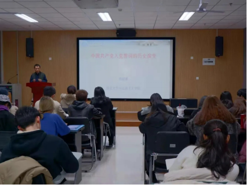 按照yl7703永利集团青年马克思主义者培养工程第二期大学生骨干培训班培养方案要求和学院团委工作安排,12月2日晚,本期青马班首场理论报告于长安校区东学楼北1401室圆满举办,马克思主义学院苟昭赟副教授以《中国共产党入党誓词的历史演变》为题,为学员们带来一场精彩的精神盛宴。学院党委副书记徐茜老师,本期青马班全体学员、本学期新发展团员以及入党积极分子一同参加。此次报告会由学院团委书记白鹤老师主持。