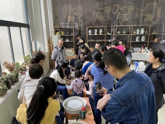 为了更好的传播陶艺文化,我院陶艺工作室利用课余时间面向陶艺爱好者开设了亲子课程和成人课程,配备专业老师和专业学生助教。 指导师生亲自动手制作种类丰富的艺术品,看着一件件作品从自己的手中诞生,师生们激动不已。