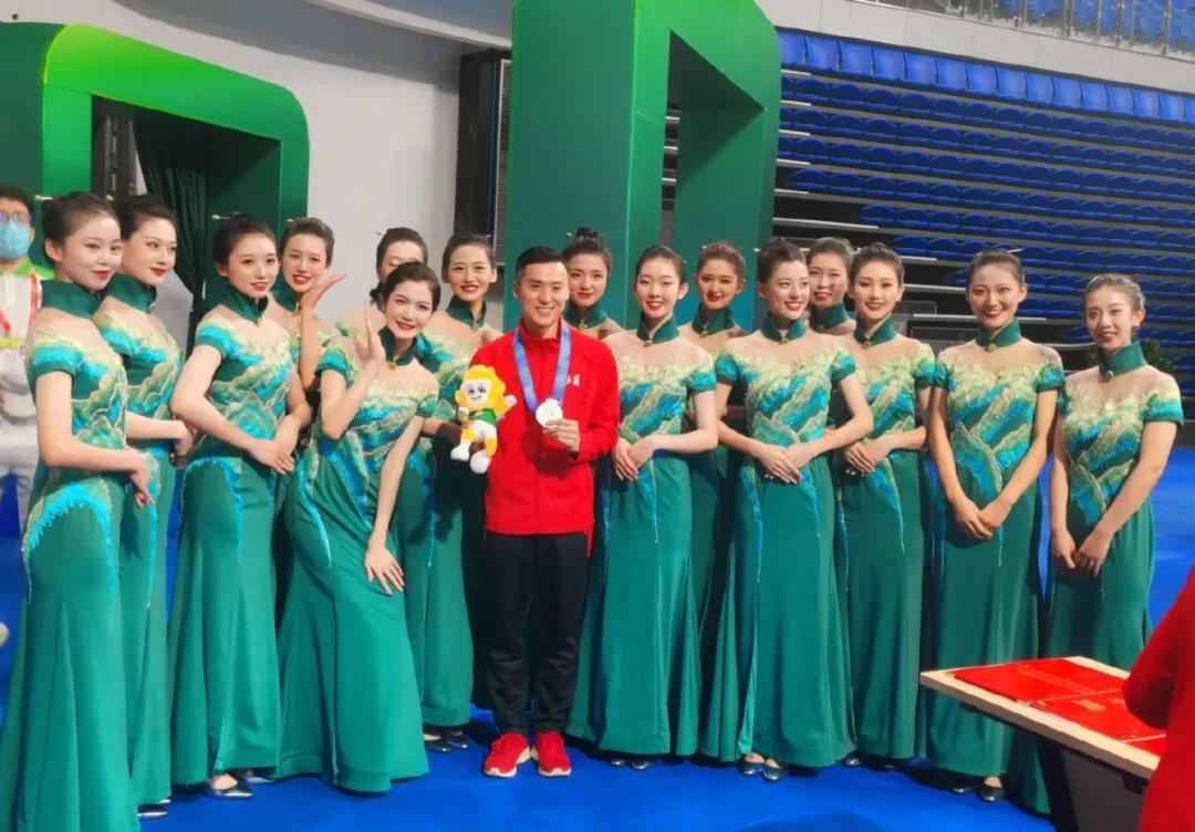 作为十四运的颁奖礼仪志愿者,我们的工作是在比赛结束后,进入颁奖环节时,用托盘托住奖品上前递送给颁奖嘉宾。为了以最好的风貌迎接十四运的到来,颁奖礼仪在测试赛之前做了一系列培训。在蹦床比赛开始前几天也要早早到体育馆进行彩排及其他准备工作,最终顺利完成了蹦床比赛的颁奖。能够站在颁奖台前,为这些优秀的运动员们递送奖章何其荣幸!一次志愿服务的机会,一件终身难忘的经历!