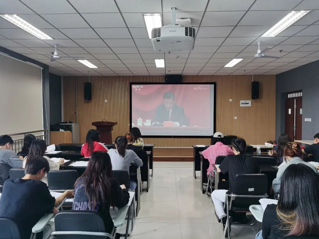 5月11日下午,yl7703永利集团第三期青马班全体成员在长安校区东学楼1401报告厅集中学习习近平总书记在庆祝大会的重要讲话,观看了讲话视频,并对讲话金句进行了重点学习。