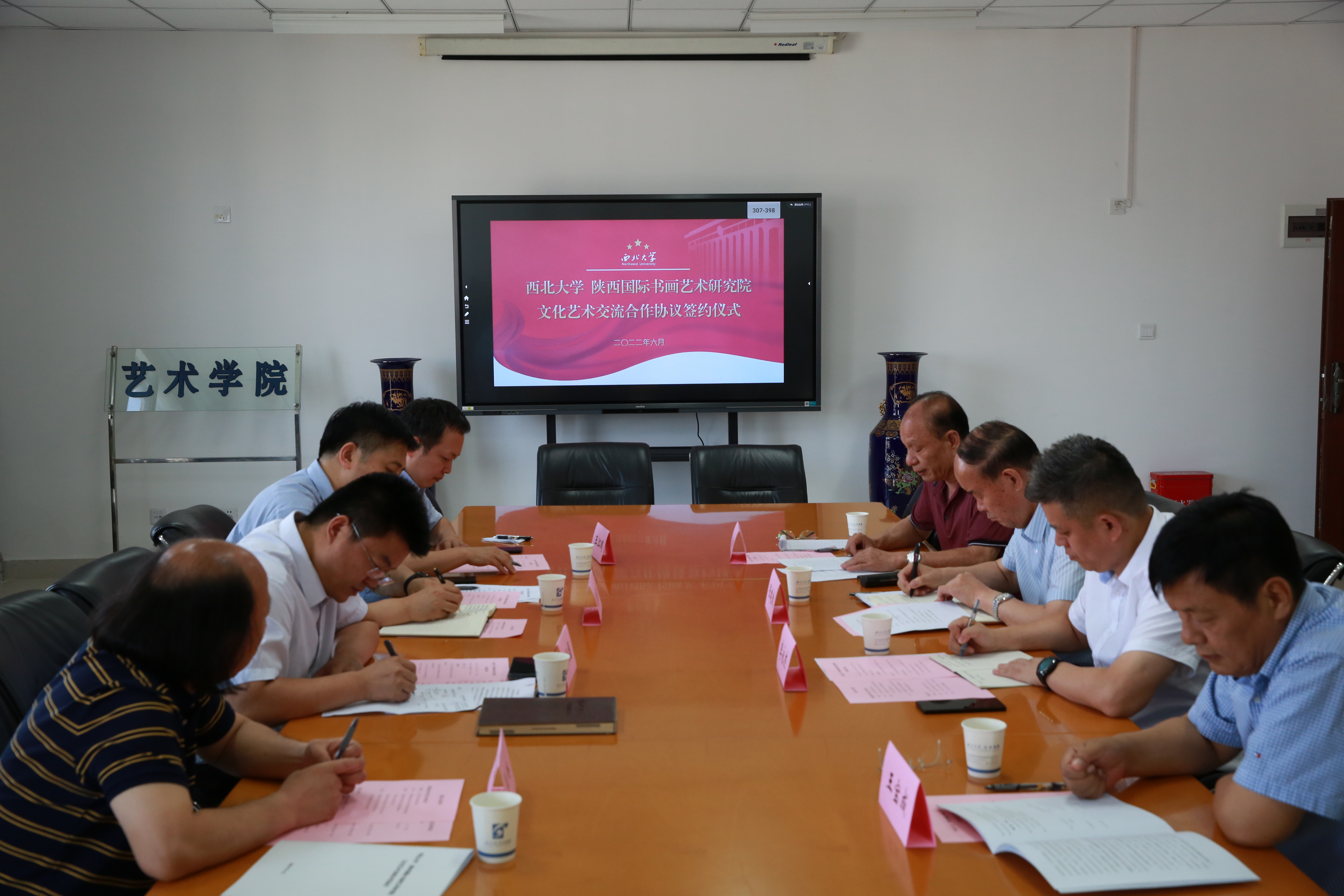 6月28日上午,我校与陕西国际书画艺术研究院签署合作协议。我校党委常委、副校长吴振磊,西安市政协原副主席张建政出席仪式,陕西国际书画艺术研究院、我校国内合作与校友工作处及学院相关负责人陪同参加。签约仪式由国内合作与校友工作处处长崔延力主持。