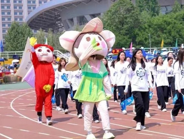 旌旗飞扬,沐浴着柔和的阳光,踏着孕育万物的沃土。伴随着冉冉升起的国旗,师生们身着自行设计的运动衫,迈着整齐划一的步伐,和着嘹亮的口号声前进着。西大原创形象“萌宝”伴随在队伍中。