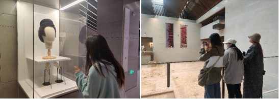 据《长安志》记载,安仁坊“皆是亲王外家,甲第并列,京城美之。”安仁坊遗址展示馆位于小雁塔景区以南,为上、下两层建筑,通过玻璃观景台可以观看地下唐代安仁坊遗址。展示馆内,采用缩微模型和声光电技术展现了唐长安城南部的几个坊缩微建筑。还有仿制的唐代文物,介绍了唐人的服装、首饰、发型、乐器、生活器皿、家具等,让人对于唐代的生活有所了解。地下是古人生活过的遗迹,地上是与之相对应的有关唐人衣食住行的展示,两者相互映衬,使同学们近距离感受着唐代生活美学,时光交错,穿越千年,与盛唐相望。