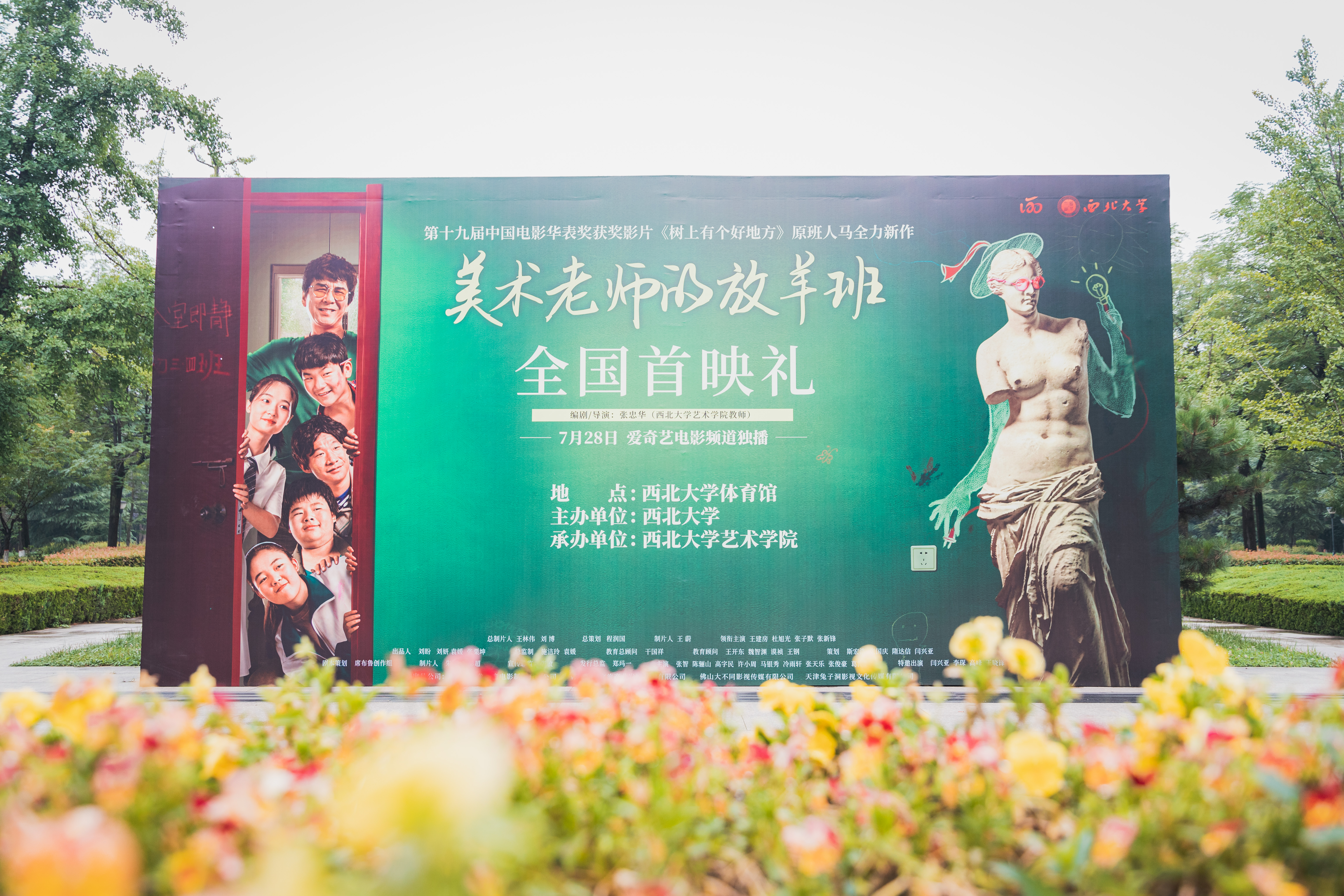 由第19届中国华表奖获奖影片《树上有个好地方》原班人马打造,我校青年教师张忠华(张磊)导演编剧执导,王建房、杜旭光、张智、张子默、张新锋等领衔主演的电影《树上有个好地方2——美术老师的放羊班》官宣定档,将于7月28日正式上映。6月28日晚,影片全国首映礼在长安校区体育馆举行。