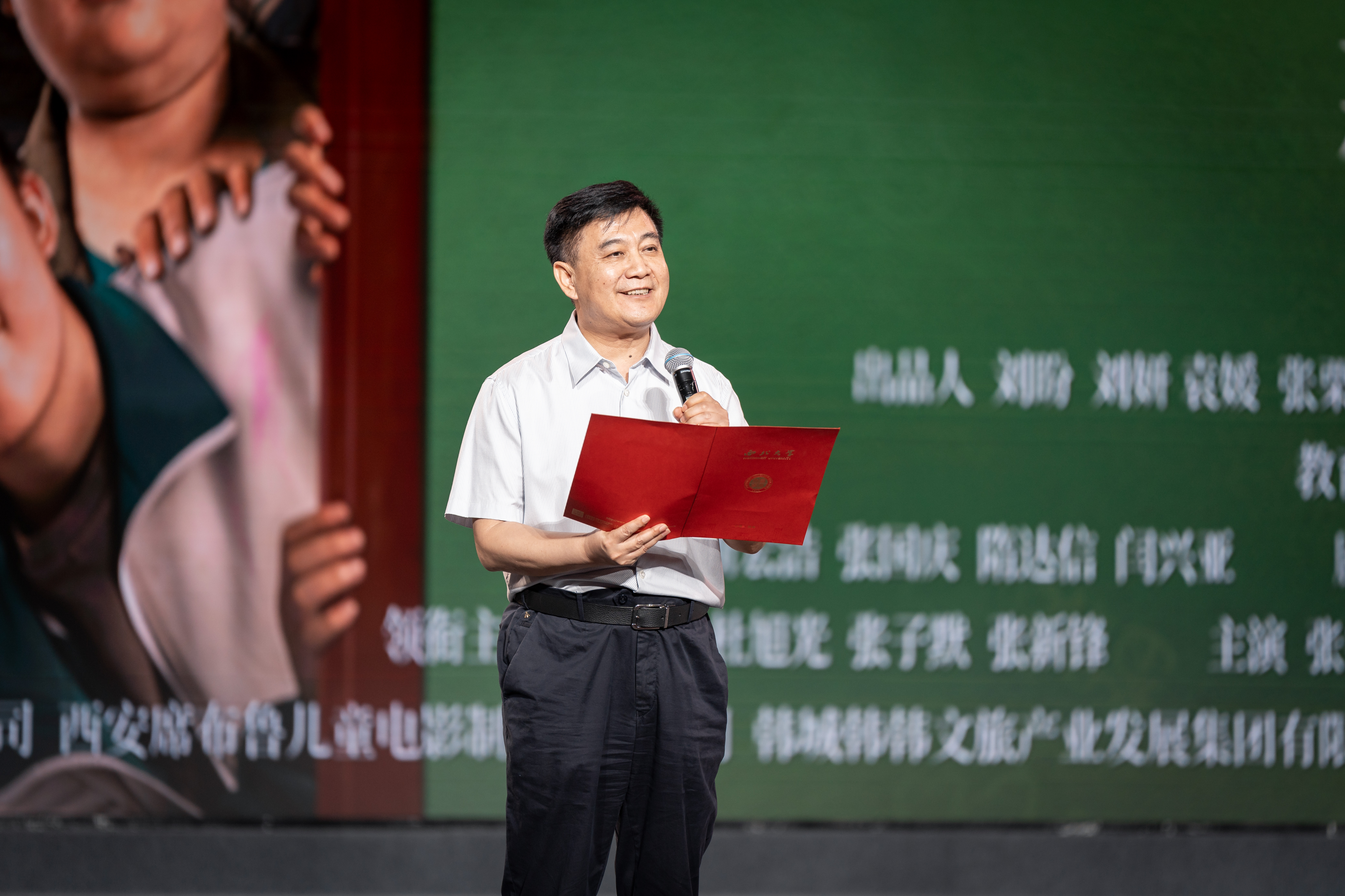 郭立宏代表学校向出品方代表赠送了西大蓝田玉印章,陕西省委宣传部电影处四级调研员李晓楠,中共临潼区委常委、宣传部部长李子阳,韩城市委统战部常务副部长张国庆先后致辞。首映礼由电影出品人刘盼主持。
