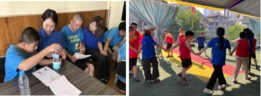 7月16日至18日,实践队继续前往碑林区晶洁鸟特艺调理阳光家园,与智力残障“儿童”们一起开展一系列特艺调理活动。包括绘画、唱歌教学,大家还一起进行了室外游戏,通过这些内容,希望能够加强他们的动手、沟通能力,感受快乐和幸福。
