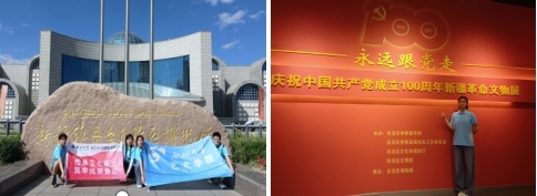 实践期间,团队成员参观了位于乌尔禾区新时代文明实践中心内的四史教育展览馆,从而进一步笃定信仰信念,传承红色基因;欣赏了新疆日报社、自治区教育厅、自治区文联主办的传统滋养自信、文化浸润心灵《童绘新疆》画作展。这些画作都是新疆孩子眼中的中国式现代化,看着这些作品,队员们融入其中,仿佛置身于祖国大西北,穿梭在天山南北间;团队成员还来到位于乌尔禾区白杨河大峡谷内的航天科普基地和博物馆,感受航天人的执着与坚韧,感叹中国航天的壮丽征途。参观新疆油田公司风城油田作业区,为中国石油工人的创造力点赞。