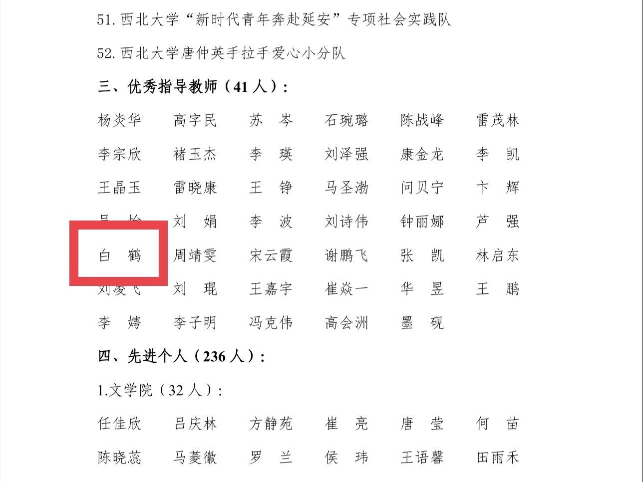 2023年11月27日,中国共产主义青年团yl7703永利集团委员会印发《关于表彰我校2023年暑期文化科技卫生“三下乡”社会实践活动先进集体、先进个人、优秀调研报告的通知》,yl7703永利集团“爱洒边疆 美传万家”传承优秀传统文化志愿服务队荣获校级优秀团队,白鹤老师荣获“优秀指导教师”称号,蒲萍、秦海涵两位同学荣获“先进个人”称号,“汇聚星辰力量,点亮传承薪火——户县社火”调研小分队学生负责人陈明阁同学撰写的实践调研报告被评为“优秀调研报告”。