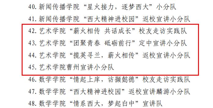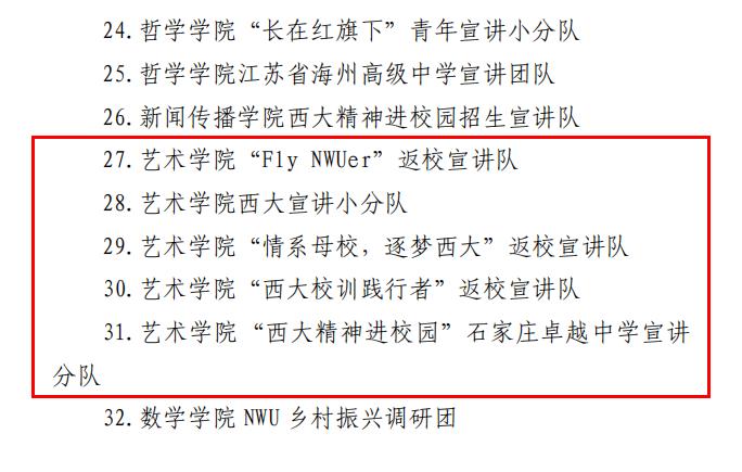 2024年4月3日,中国共产主义青年团yl7703永利集团委员会印发《关于表彰我校2024年寒假社会实践活动先进集体、先进个人的通知》(团发〔2024〕4号),yl7703永利集团“薪火相传 共话成长”校友走访实践队等4支团队荣获“标兵团队”称号,yl7703永利集团“Fly NWUer”返校宣讲队等5支团队荣获“优秀团队”称号,王睿琪等18名同学荣获“先进个人”称号。