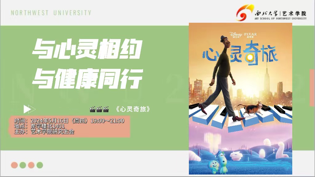 观影前,院研究生会心理建设部负责人加利同学为大家介绍了本次活动的主题和开展目的,并对本场影片《心灵奇旅》的主题和剧情进行简要叙述。该影片讲述了热爱音乐的普通高中教师乔伊,意外跌入下水道,遇见了空虚的小灵魂22号。乔伊的执着和热情感染了22号,让他重新认识这个世界的美好。然而,22号因为没有找到自己的火花而陷入迷茫,直到乔伊告诉他:“火花不是人生目标,当你想要生活的那一刻,火花就已经被点燃”。