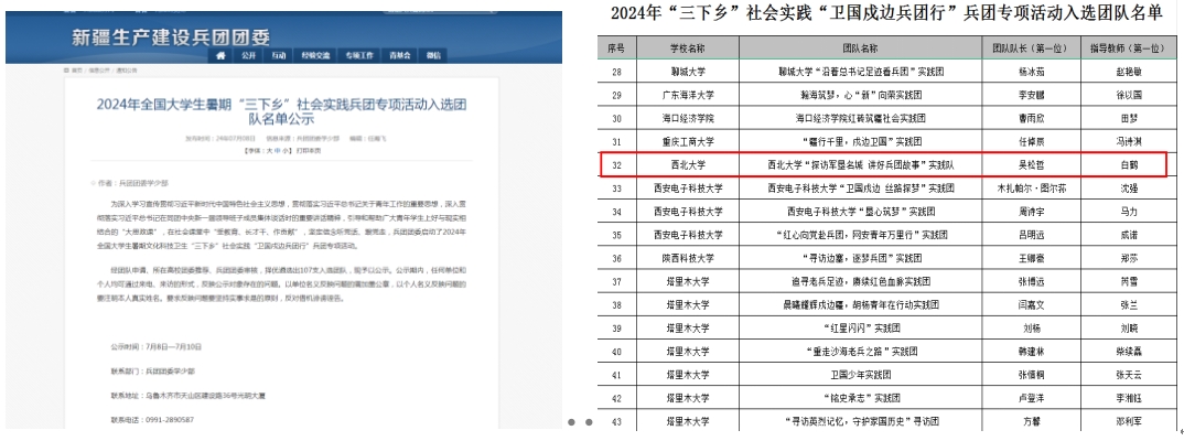 该团队于今年7月,顺利入选兵团团委2024年全国大学生暑期文化科技卫生“三下乡”社会实践“卫国戍边兵团行”兵团专项活动。