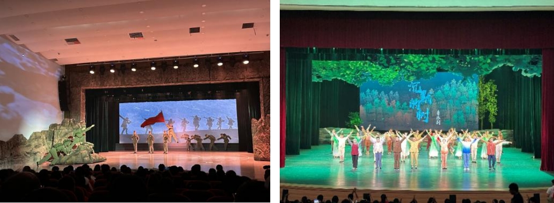 剧场演出我来赏。团队一行来到石河子人民电影院和明珠剧院,分别欣赏了舞台剧《燃情岁月》和音乐剧《沉默的树》。剧目通过音乐、舞蹈、戏剧等多种艺术形式,采用时空交错的艺术表现手法再现当年的历史场景,讲述兵团老一辈军垦人扎根边疆、建设边疆的故事,给团队成员带来极大的内心震撼。