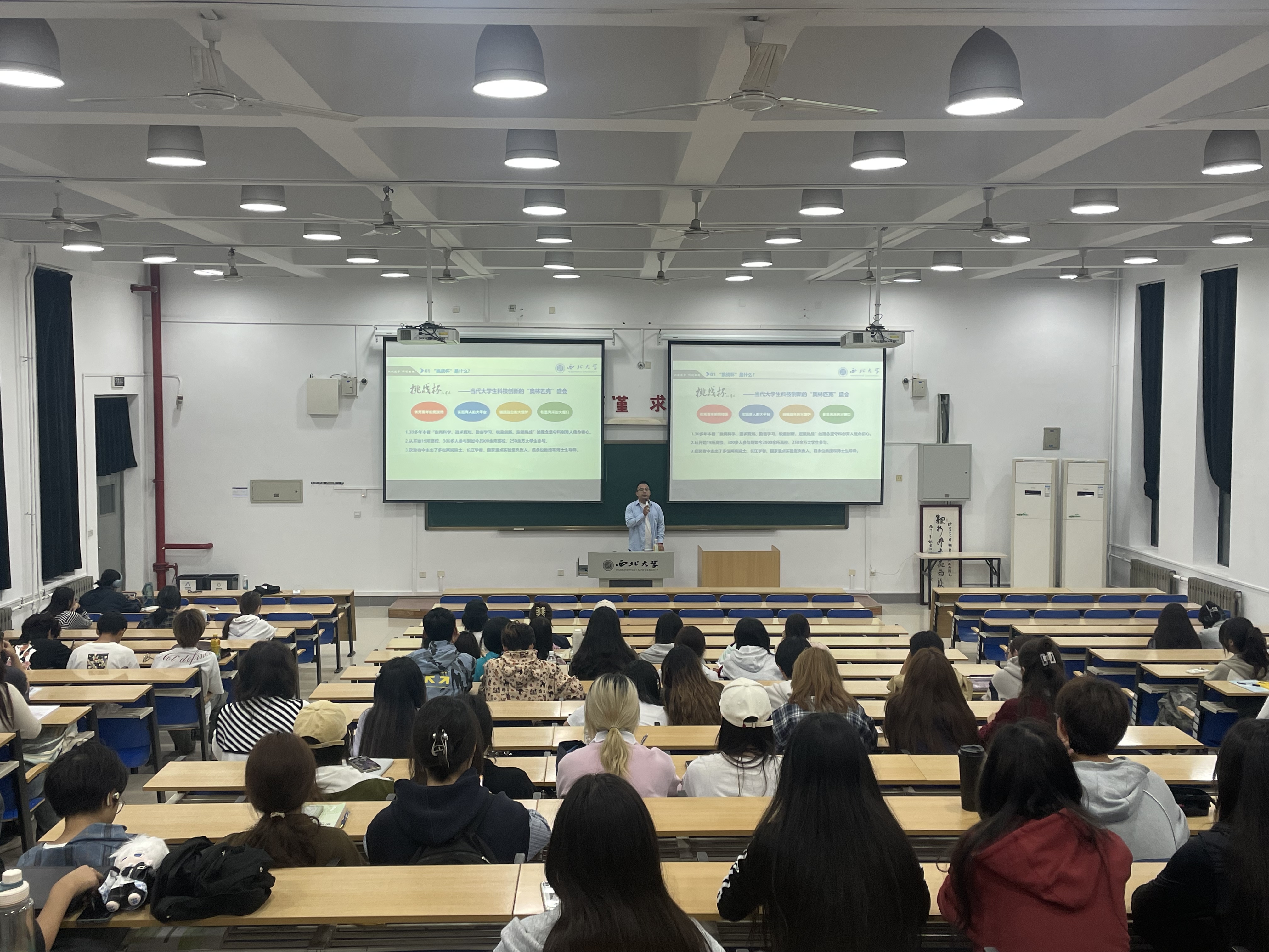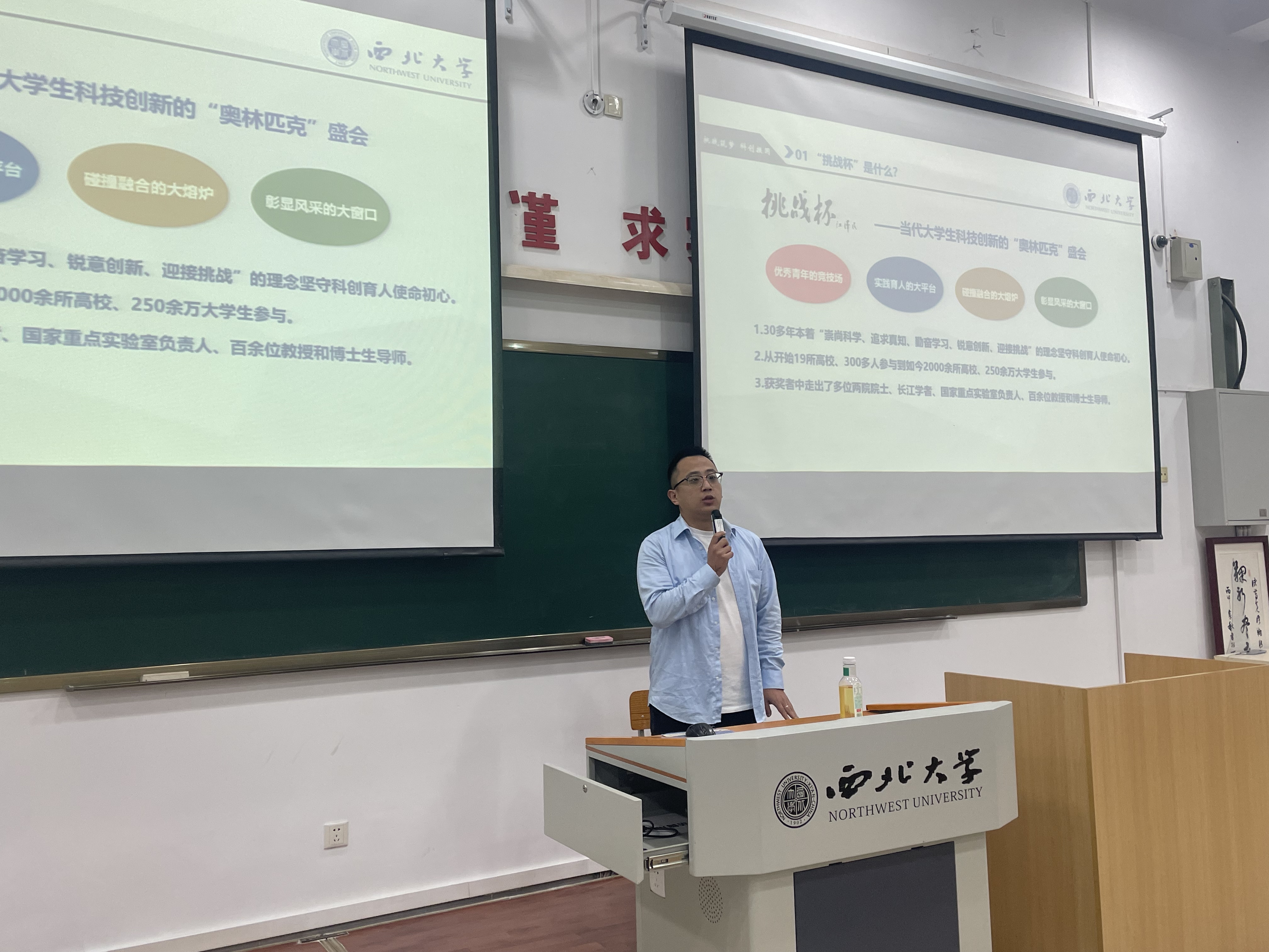 为拓展学生视野,激发学生创新创业和实践能力,进一步增强学生对“挑战杯”比赛的认识,2024年10月14日19:00,yl7703永利集团在长安校区3J301教室举办第十二届“挑战杯”大学生课外学术科技作品竞赛宣讲会,全体2024级本科新生参加此次会议,会议由辅导员宋培源主持,本次宣讲会邀请校团委青年创新创业服务中心主任李晓杰老师做主讲人。