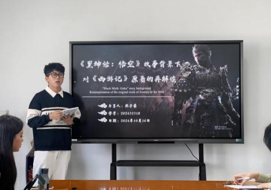在第十六期读书分享会上,十名同学围绕多部经典著作展开了精彩的分享与讨论。高雨宣、晁淑雯、曹珂、刘舒鑫、肖佳玥等同学,依托各自的学科方向领域,分别分享了《中国纹样全集》《关于构图问题》《电影编剧的秘密》《影像叙事的力量》《图像证史》等这些与专业相关的书籍。韩舒越同学以其独特的视角分享了《长安的荔枝》中的历史韵味,程宝同学则带领我们走进了《山茶文具店》的温情世界。韩子豪同学紧跟热点,作了《<黑神话·悟空>故事背景下对《西游记》原著的再解读》,展现了经典文化的现代魅力。贾小玉同学则通过《我身边的年轻艺术家》,分享了当代艺术界的创新力量。郭子玉同学以《平凡的世界》为载体,讲述了平凡生活中的不凡追求与坚韧信念,深刻诠释了读书分享会主题。