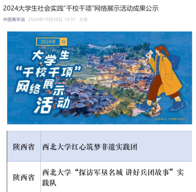 此外,学院两支实践团队顺利入选中国青年报社主办的2024大学生社会实践“千校千项”网络展示活动项目优秀名单。