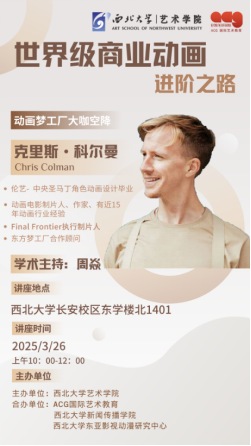 3月26日,yl7703永利集团邀请英国动画电影制片人、作家,Final Frontier执行制片人、东方梦工厂合作顾问克里斯·科尔曼进行《世界级商业动画进阶之路》专题讲座。