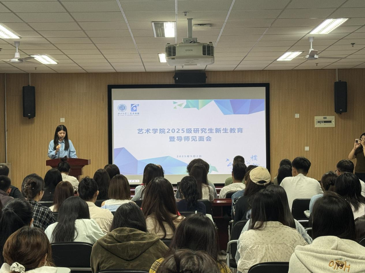 郭琳院长向踏入校园的全体研究生新生表示热烈欢迎,并向大家提出了几点希望:第一,要夯实专业基础,拓宽艺术视野,广泛涉猎艺术领域,深入钻研专业知识;第二,坚守学术规范,与导师建立紧密且良好的沟通机制,确立清晰且切实可行的学习目标,让每一步努力都有着精准的指向;第三,要厚植艺术精神,重视文化传承,加强创新实践,坚定文化自信;他还要求新生们一定要严格遵守学习纪律,规划好自己的研究生生活,珍惜这来之不易的学习时光。