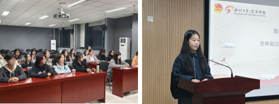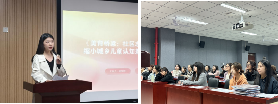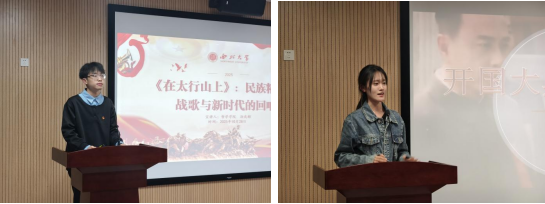 哲学学院孙庆彬同学以《<在太行山上>:民族精神的战歌与新时代的回响》为题,从《在太行山上》这一艺术作品的历史背景、创作历程、精神传承等多维度展开,引领同学们感受红色经典的魅力,从中汲取奋进前行的力量;新闻传播学院李昱函同学以《开国大典上的声音——走近齐越》为题,生动讲述了杰出校友、新中国广播事业奠基者齐越在开国大典上向全世界播报的历史性时刻,再现了那个庄严激昂的声音如何传遍中国、震撼世界。通过齐越“播音三戒”的职业信条,诠释其严谨求精、为人民发声的崇高精神;yl7703永利集团杨雯婷同学以《美育桥梁:社区志愿美术教育对缩小城乡儿童认知差距的实践探索》为题,结合自身志愿服务经历,通过生动的课堂案例和数据对比,展示了美育在提升儿童语言能力、想象力与自信心方面的显著成效,并呼吁青年学子以实际行动助力教育均衡发展。