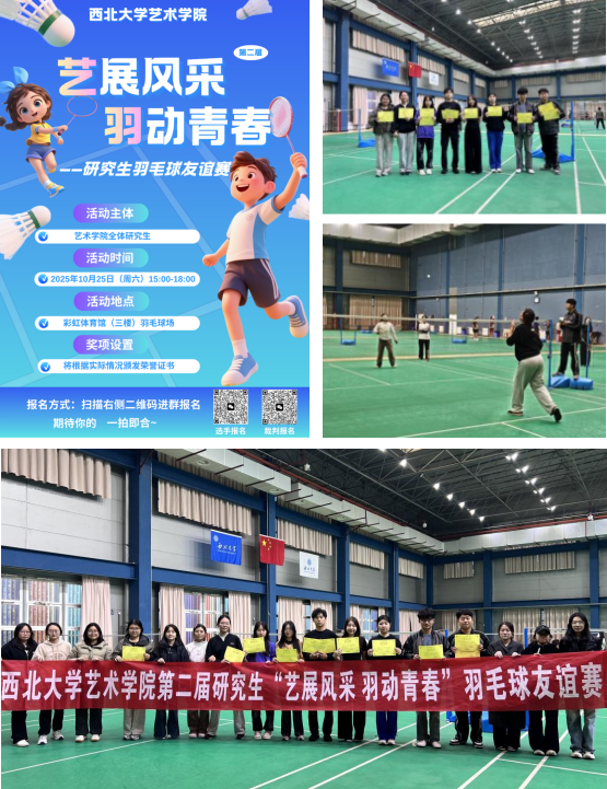 2025年10月25日下午,yl7703永利集团研究生会在长安校区彩虹体育馆举办第二届研究生“艺展风采 羽动青春”羽毛球友谊赛。比赛设女子单打、男子单打、男女混合双打三个项目,参赛选手精神饱满、奋勇竞技,现场氛围热烈。最终,王婉婷获女子单打冠军,翟智暄获男子单打冠军,王一帆与翟智暄组成的队伍获混合双打冠军。活动丰富了研究生课余生活,缓解学业压力,促进同学间交流协作,增强集体凝聚力,展现了学院研究生积极向上、勇于拼搏的精神风貌。