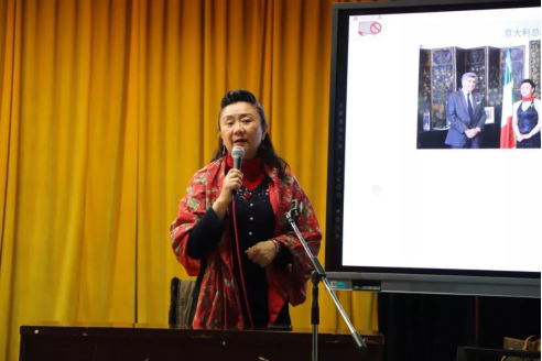 周玲教授主要围绕“意大利美声唱法与意大利文化”、“意大利美声唱法与意大利语言”、“美声唱法的歌唱特点”、“意大利美声唱法与意大利歌剧”展开系统讲解,通过理论讲解、学生团队的艺术展演,为大家呈现了一场精彩纷呈的艺术讲座。她强调:“发源于亚平宁半岛的意大利美声唱是目前国际上通行的三大唱法之一”;“美声唱法”不仅见证和推动了西方声乐艺术走出中世纪宗教支配的艺术道路,而且也是文艺复兴的具体路径之一;“美声唱法”在艺术上追求“气息”“共鸣”等系统的混合声区唱法,它的诞生与意大利优越的自然环境、意大利人民人乐天知命的民族性格,以及近代地中海地区商业文明的发展有着千丝万缕的联系;意大利美声唱法催生了意大利歌剧,更推动了启蒙运动以来戏剧艺术的繁荣;此外,近代以来伴随东西文化的交往,“美声唱法”在中国的传播中也实现了中国化,诞生了与民族唱法相融合的“民族-美声唱法”,极大地丰富了人类的声乐艺术。周玲教授的学生团队,为大家展示了《osurdado 'nnammurato》( 《热恋中的战士》)、《Hai gia vinta la causa》(《你赢得了诉讼 》自莫扎特歌剧《费加罗的婚礼》选段》及威尔第的著名歌剧《茶花女》第一幕《 LA TRAVIATA Atto Primo》,(《序曲》Preludio 、《聚会》 Introdutzione、《饮酒歌》 Brindisi、《华尔兹与二重唱“幸福的一天”》 Valzer e Duetto “Un dì felice” 、《聚会结束》 Stretta dell'introduzione 、《咏叹调“多么奇怪!他也许是我渴望见到的人”》Aria "È srano, è strano! ...Ah fors’ è lui”等经典意大利美声作品,以及《到延安去》《菩萨蛮·黄鹤楼》《游击队之歌》《忆秦娥 娄山关》等新创作的中国化的美声作品。此外,周玲教授为大家介绍了她作为陕西省特殊人才支持计划的一项活动——《丝路曼歌》系列的活动的项目推进情况,她强调“美声唱法的艺术魅力”见证了东西方之间丝绸之路的文明交往,在新的“一带一路”计划的倡议下,必将为中意两国及丝路沿线地区和国家的音乐文化的交流提供新的契机与活力。